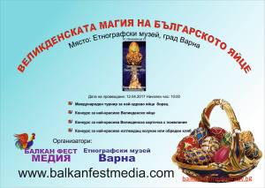 Великденска работилница за малки и големи ви очаква в Етнографски музей – град Варна на 12 април 2017 г., част от Фестивала “Великденската магия на българското яйце” с начален час 10:00. Посещението на работилницата е с предварително записване на телефон 0882 00 88 60 или телефонът на музея: +359 52 630 588; a може да ни пишете и по e-mail: balkanfestmedia@abv.bg или във Facebook страницата на Фестивала: https://www.facebook.com/VelikdenskataMagia/