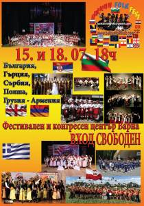 PLAKAT 2017 A4Предстоят едни от най-незабравимите концерти, представящи фолклорното богатство на 14 държави, които ще ни потопят в прекрасната атмосфера на Фестивал БАЛКАН ФОЛК ФЕСТ 2017 година. Очаква ни концертна програма, изпъстрена от изпълненията  на близо 180 фолклорни ансамбли, хорове, духови оркестри, танцъори, мажоретки и певчески състави. Бъдете и вие част от културата и традициите на 14 държави. Първият от 24-те концерта на сцената на Зала 1 във Фестивален и Конгресен център – Варна ще се състои на 11 юни в 18:00 часа, Вход Свободен.